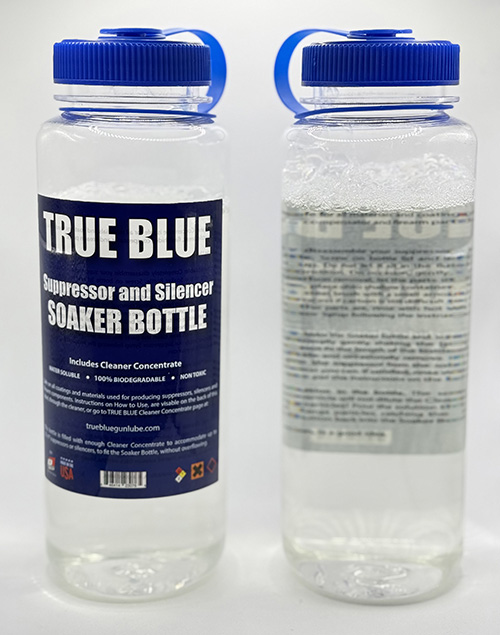 Our Suppressor / Silencer Soaker Bottle is pre-filled with 32 fl. oz. our Cleaner Concentrate for cleaning suppressor, silencers and firearms parts. Slid the parts in and follow the included instructions on the back of the label.